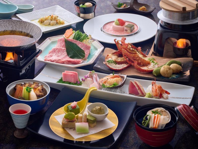 Aperitif Seasonal delicious sake Appetizer Assortment of seven kinds Bowl objects Clam and spring vegetable soup Juri Today's delicious fish Small pot Hiroshima beef Sakura hotpot Grilled Dish Grilled spiny lobster and kinome Hot food Softly simmered abalone Vinegar Marinated oysters Meals Sakura shrimp rice pot A boat Red miso soup Water Two seasonal varieties