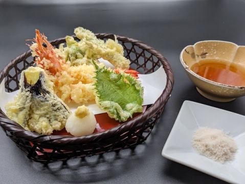春季蔬菜和炸蝦天婦羅