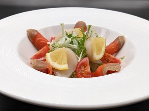 鮭魚和扇貝薄片